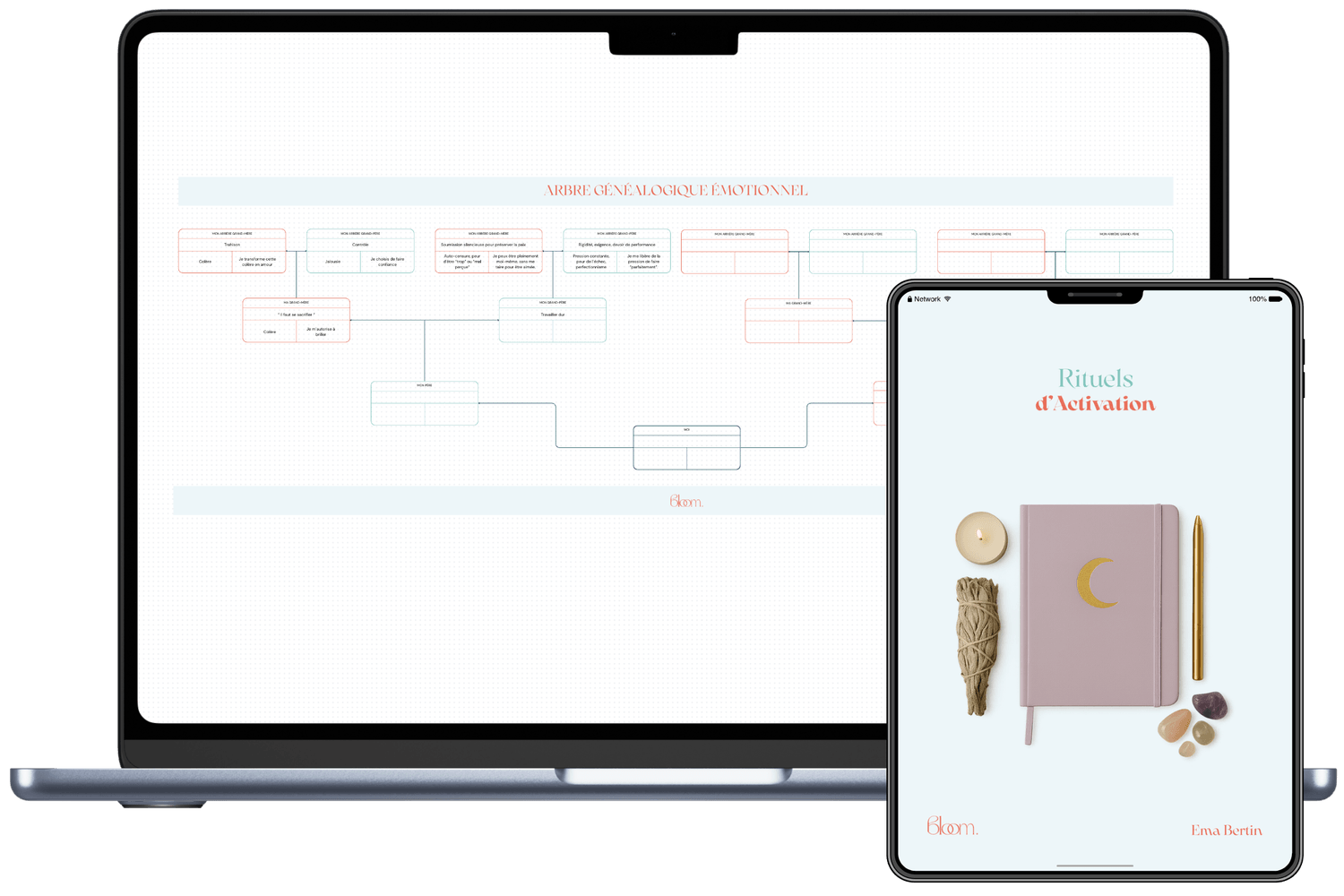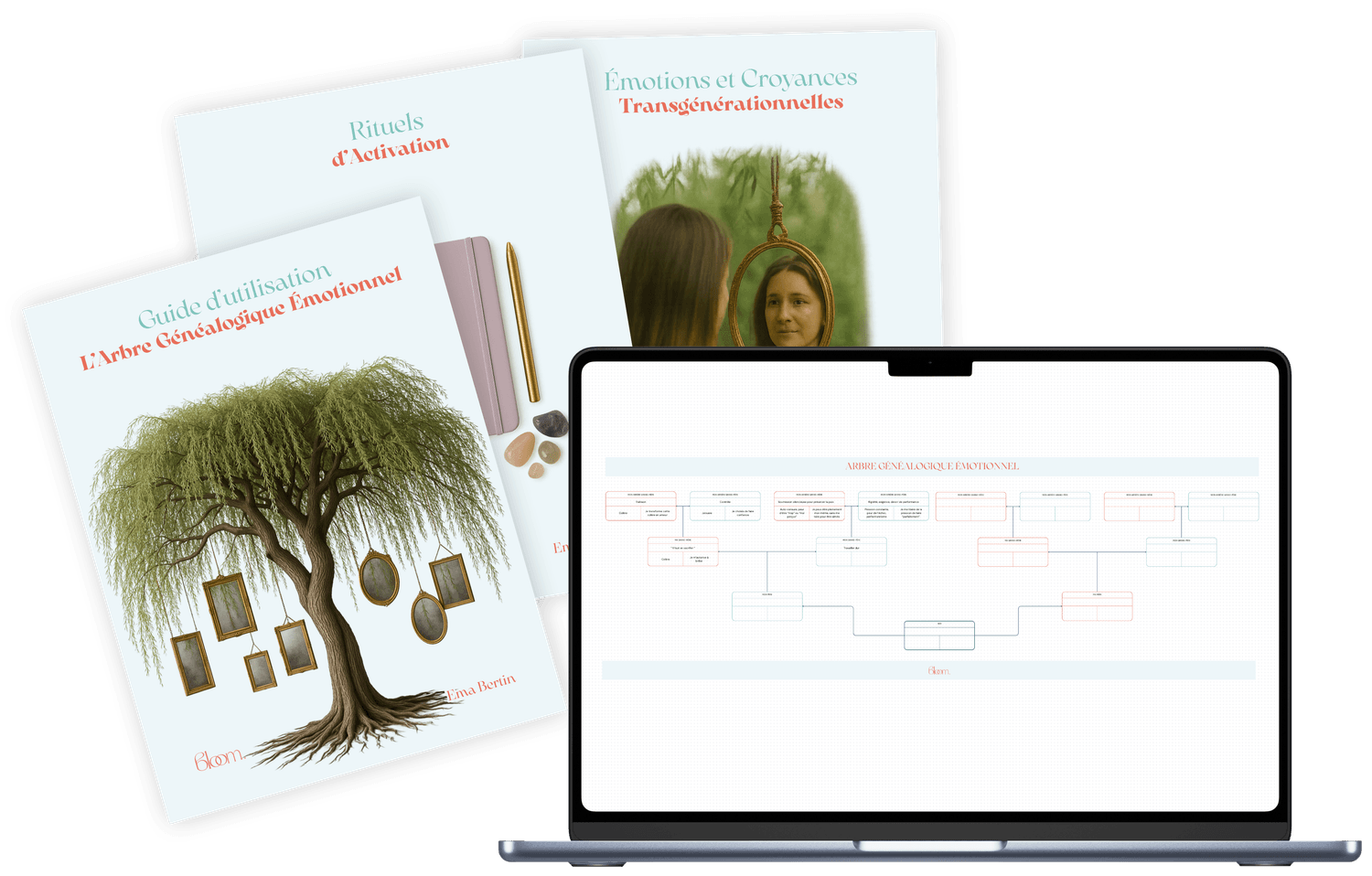 Un support à la fois introspectif, esthétique et profondément symbolique, pensé pour t’accompagner dans ton processus de guérison transgénérationnelle.